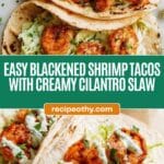 These Blackened Shrimp Tacos with Slaw offer a vibrant, flavorful meal combining spicy, smoky shrimp with a creamy, tangy cilantro-lime slaw. Perfect for a quick weeknight dinner or a casual gathering, these tacos bring together fresh ingredients and bold spices for a deliciously balanced bite every time.