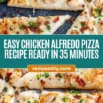 This Chicken Alfredo Pizza combines creamy Alfredo sauce, tender shredded chicken, crispy bacon, and a blend of mozzarella and Parmesan cheeses atop a golden, crispy pizza crust. Perfect for a comforting homemade meal, it offers rich flavors and a delightful twist on traditional pizza.