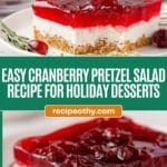 Cranberry Pretzel Salad is a delightful layered dessert featuring a crunchy pretzel crust, a creamy sweetened cream cheese and Cool Whip middle layer, and a fruity tangy cranberry gelatin top layer. Perfect for holiday gatherings or any festive occasion, this easy-to-make salad balances salty, sweet, and tart flavors with a variety of textures.