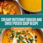 PrintCreamy Roasted Butternut Squash and Sweet Potato Soup with Coconut Milk Recipe