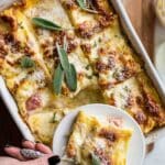 - Cool and garnish: Remove the casserole from the oven and let it cool for 10 minutes. Garnish with fresh sage sprigs and dust with powdered sugar.