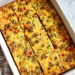 This hearty Breakfast Casserole combines savory pork sausage, fluffy eggs, vibrant bell peppers, green onions, and melted cheddar cheese baked to perfection. It’s a perfect make-ahead dish that can be enjoyed warm for a satisfying morning meal or reheated throughout the week.