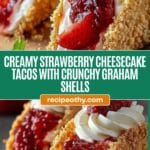 Strawberry Crunch Cheesecake Tacos combine creamy, smooth cheesecake filling with a crunchy graham cracker shell, fresh juicy strawberries, and optional toasted pecans for a delightful no-bake dessert that’s perfect for any occasion.