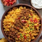 This Taco Pasta Salad is a flavorful and easy-to-make dish combining seasoned ground beef, rotini pasta, fresh vegetables, mild cheddar cheese, and tangy Catalina dressing. Topped with crunchy Nacho Doritos and optional iceberg lettuce, it’s perfect for casual gatherings or as a hearty meal on its own.